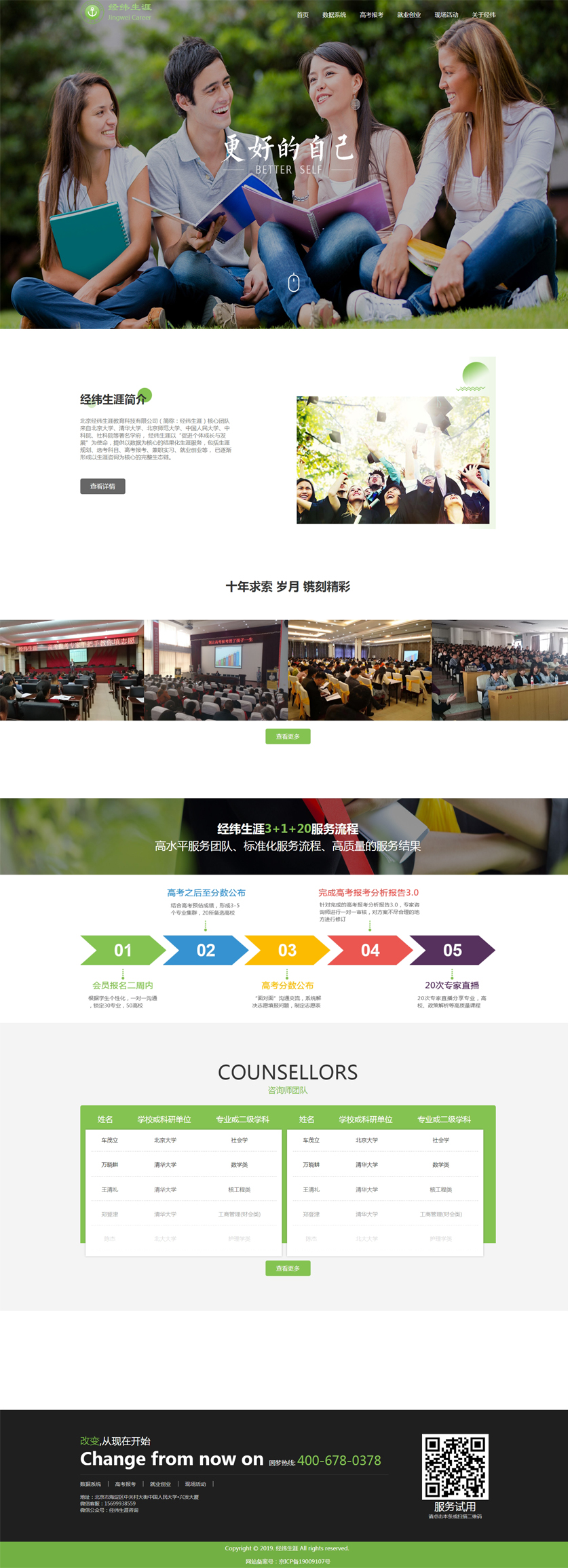 Project Description 北京经纬生涯教育科技有限公司(简称:经纬生涯)核心团队来自北京大学、清华大学、北京师范大学、中国人民大学、中科院、社科院等著名学府, 经纬生涯以“促进个体成长与发展”为使命,提供以数据为核心的结果化生涯服务,包括生涯规划、选考科目、高考报考、兼职实习、就业创业等, 已逐渐形成以生涯咨询为核心的完整生态链。 Official website address 保山http://www.jingweishengya.com/ I want to share